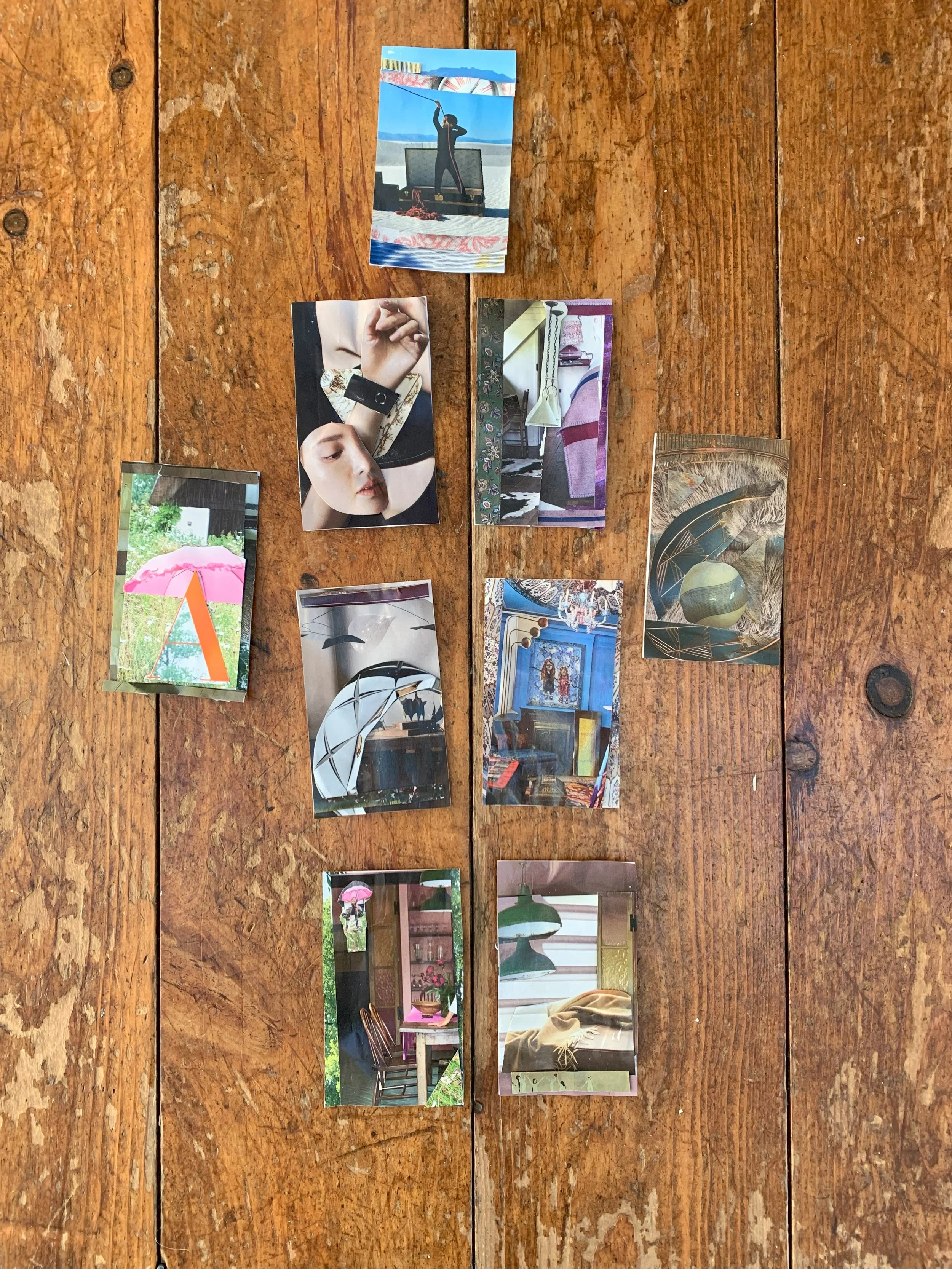 I grew up in the Episcopal Church in Alabama and worked as a camp counselor every summer during college at Episcopal camps in Alabama and South Dakota. My work-study job in college was in the chapel. When I began teaching in Washington, DC, I went on silent retreats at monasteries and did seminary classes for lay people at my church St. Mark’s on Capitol Hill. I taught and took classes there connecting theology and fiction (we read Phillip Pullman series for teens) and theology and art (we spent a lot of time at different Smithsonian exhibits!). When I moved to Massachusetts, I dove deep into yoga, doing 500 hours of training with Beryl Bender and The Hard and the Soft Yoga Institute and an intensive with Nikki Myers about yoga and addiction. In my time as a middle school principal, I retreated to Kripalu, a yoga center in Western MA, almost monthly in an attempt to not burn out. There I studied with Seane Corn, Tara Brach, Natalie Goldberg, Angela Farmer, and Amy Weintraub. I started taking Writing to Awaken workshops with Mark Matousek and Dreams and Writing courses with Tzivia Gover. Those experiences re-ignited writing as a spiritual practice for me, something that in the move to motherhood and school leadership I had lost. I love to play with the magic and mystery of meditative practices like tarot, yin yoga, collaging (you can see some of my own little collage-style cards to the right!), poetry-reading. Art really is a form of both therapy and spiritual practice for me.